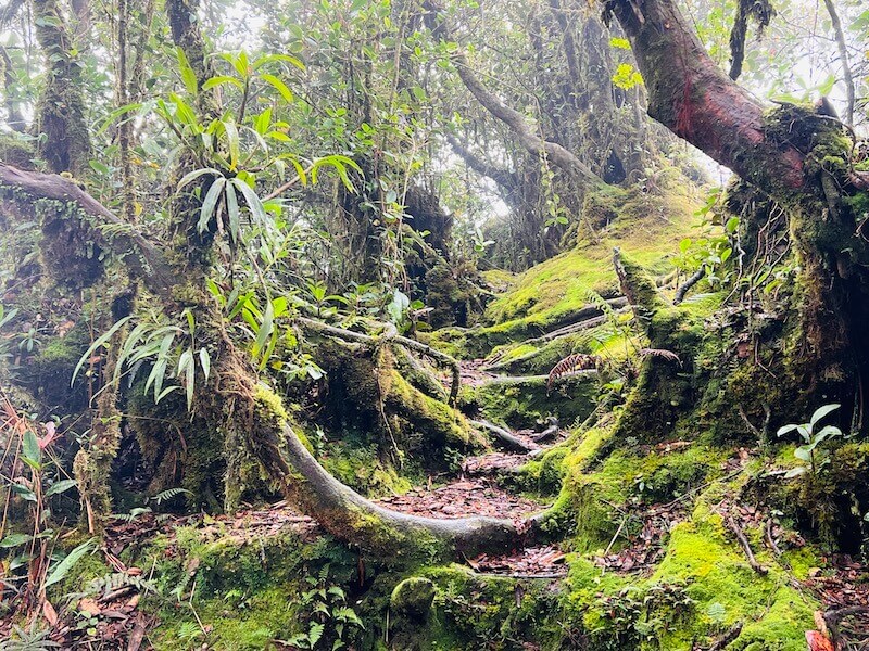 Gozd je res poseben, kar je izjemno prepleten in v celoti poraščen z različnimi vrstami maha. Občutek imaš, da je vsaka rastlina nekako povezana z ostalimi rastlinami v gozdu.