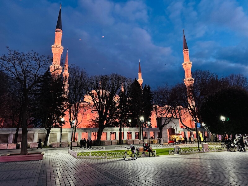 Nato smo obiskali modro mošejo, ki je od zunaj izjemno veličastna, še posebej v večernih urah, ko je v celoti v lučkam. Vstop v mošeju je brezplačen. Notranjost nam ni bila preveč posebna, gre za ogromen osrednji prostor, kjer je en del namenjen molitvi.