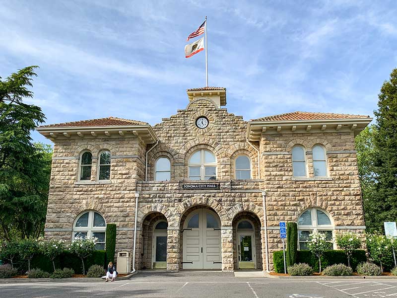 Mestece Sonoma se nahaja pol ure zahodno od Nape in je prav tako mestece znano po vinu in vinskih kleteh, čeprav ni del Napa Valley okrožja. Sonoma je še manjša od Nape, tako da sva si v eni uri ogledala vse v centru mesta. Sprehodila sva se po Sonoma Plaza in občudovala čudovite hiške, ki obdajajo trg. Ogledala sva si tudi Sonoma State Historic Park. Sonoma je najsevernejša točka frančiškanske župnije in rojstni kraj Kalifornijske zastave. Na nasprotni strani župnije se nahaja hotel in igralnica The Blue Wing Inn iz obdobja zlate mrzlice. Del parka so tudi barake v dveh nadstropjih, kjer so bivali vojaki in služinčad generala Vallejo, ko se je ta preselil iz San Francisca v Sonomo. Zraven barak je stala hiša generala, imenovana Casa Grande. V tej hiši so tudi aretirali generala Vallajo in istočasno izobesili Kalifornijsko zastavo.
