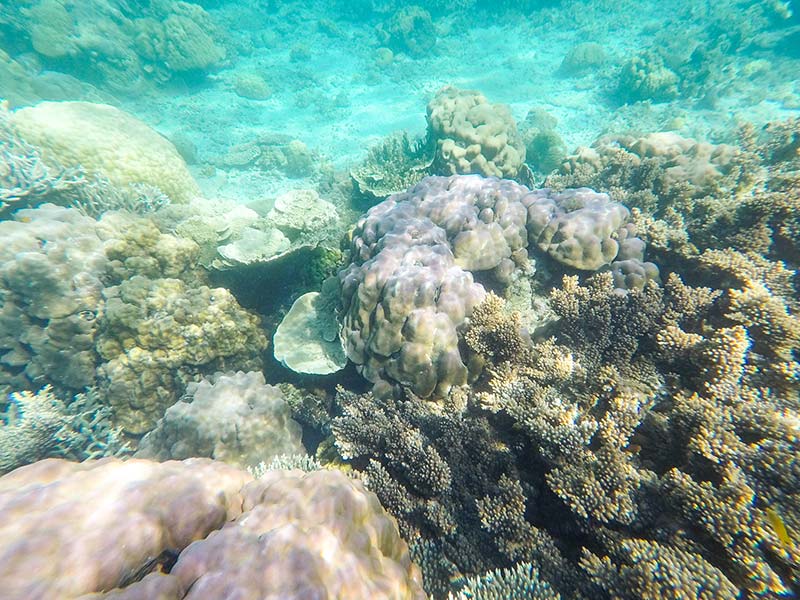 Naša zadnja postaja je bil Helicopter Island, ki ima celo majhen bar, kjer lahko kupite pijačo in jo spijete na plaži. Na Helicopter Island izkoristite tudi možnost snorklanja in opazovanja koralnega grebena. Na začetku je greben kar uničen, saj je tako nizka voda, da z lahkoto pohodiš korale, na globini pa se začne zelo lep koralni greben. Ne morem reči, da je najlepši koralni greben kar sem jih videla, ampak je lep in če ste že na Helicopter Island le izkoristite priložnost.