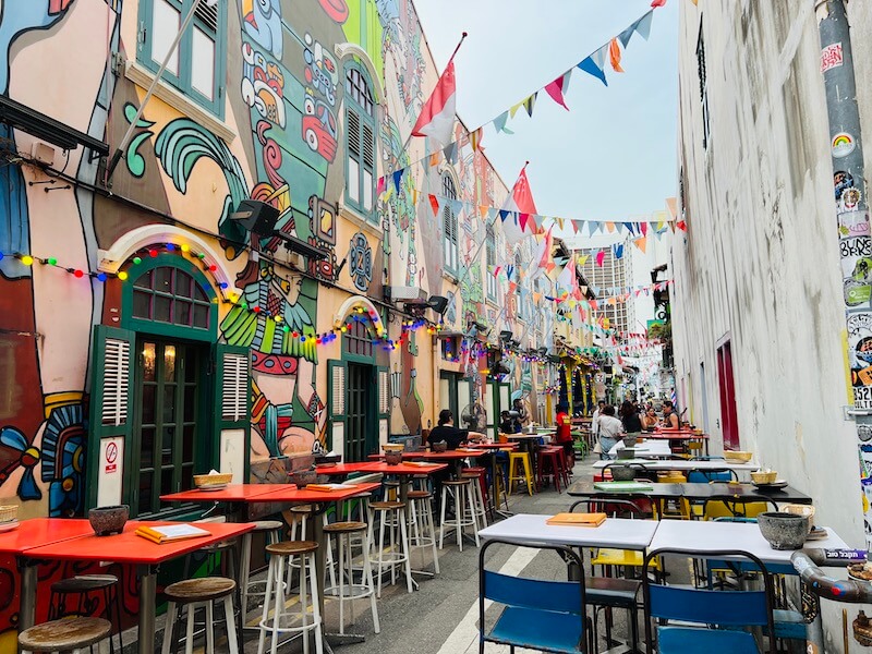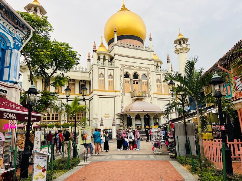 Arabski predel mesta z mošejo, tukaj sva se sprehodila med pisanimi uličicami in si od zunaj ogledala mošejo Sultan Mosque.